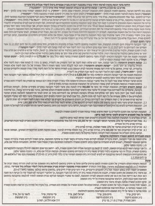 הטענה: תנאי החוזים שקבעו הנתבעות בהסכמי ההתקשרות מול לקוחותיהם, לפיהם לקוח הנרשם לקורס מולטימדיה ללימודי השפה האנגלית (תחת המותג הבינלאומי Wall Street Institute), אינו יכול לסיים את הסכם הלימודים בהלך תקופת הקורס, תוך קבלת החזר כספי יחסי מסוים מהווה תנאי מקפח בחוזה אחיד בהתאם להוראותיו של חוק החוזים האחידים.