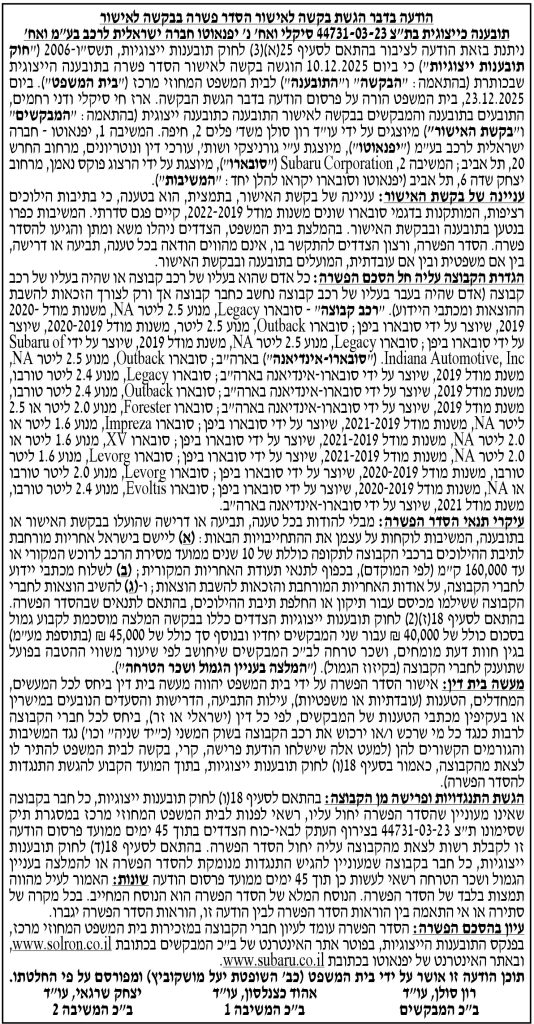 לבין יפנאוטו – חברה ישראלית לרכב בע״מ , Subaru Corporation ("סובארו"),