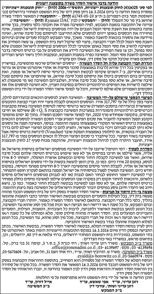 הצדדים – מר טל ווגנפלד נ' DAC Ryanair