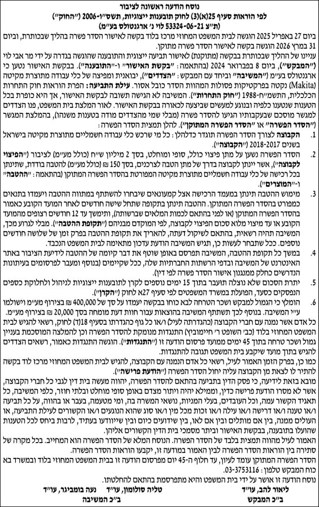 תקציר – ביום 27 באפריל 2025 הוגשה לבית המשפט המחוזי מרכז בלוד בקשה לאישור הסדר פשרה בהליך