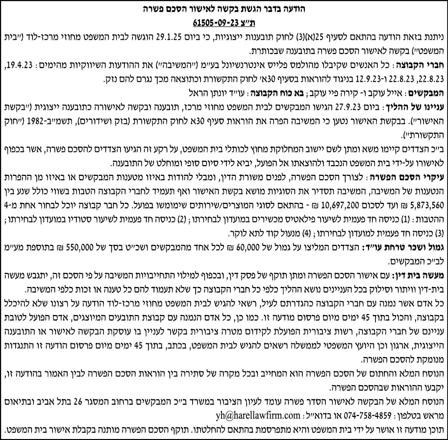 ב"כ הקבוצה- עו"ד יונתן הראל