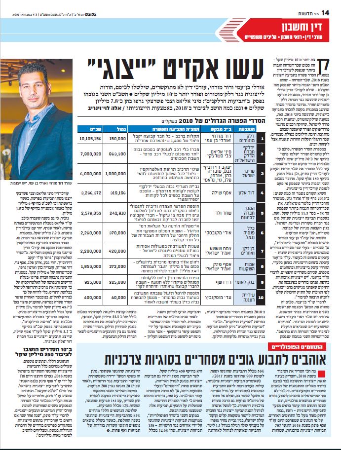 כתבה שפורסמה בעיתון גלובס ב- 3.2.2019