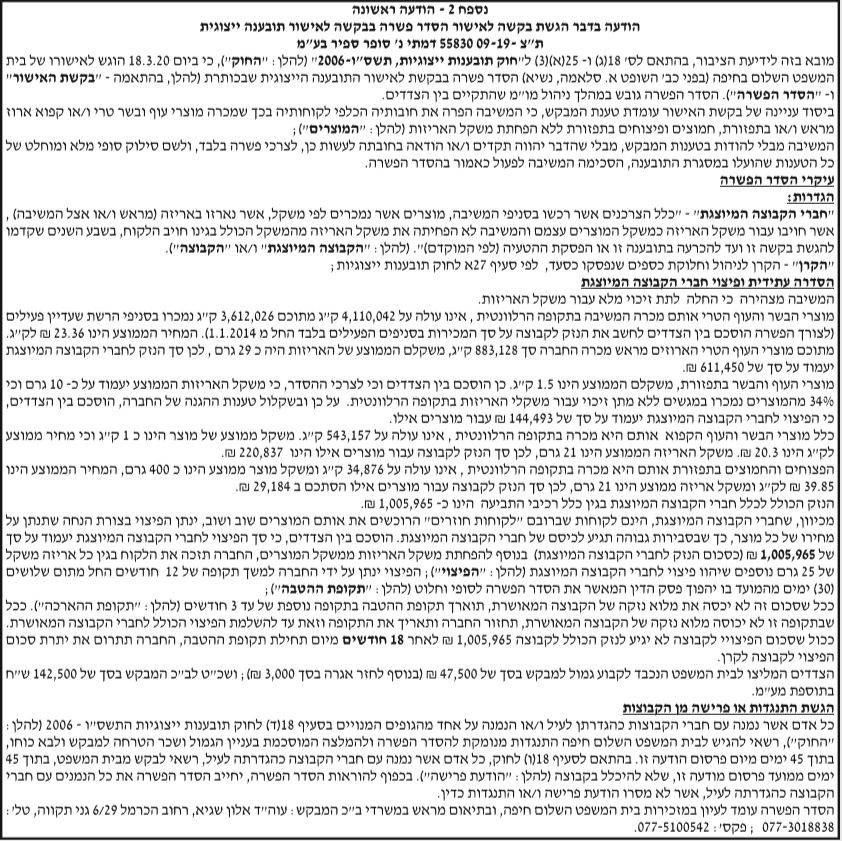 הסדר פשרה | 01/06/2020 סופר ספיר בע"מ