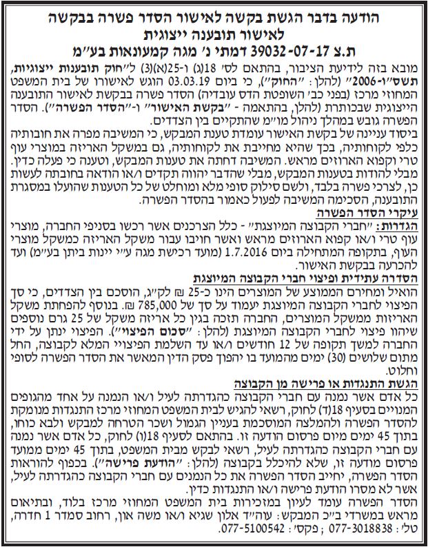 תביעה ייצוגית |עוף הגליל ואח' [22/02/2019]