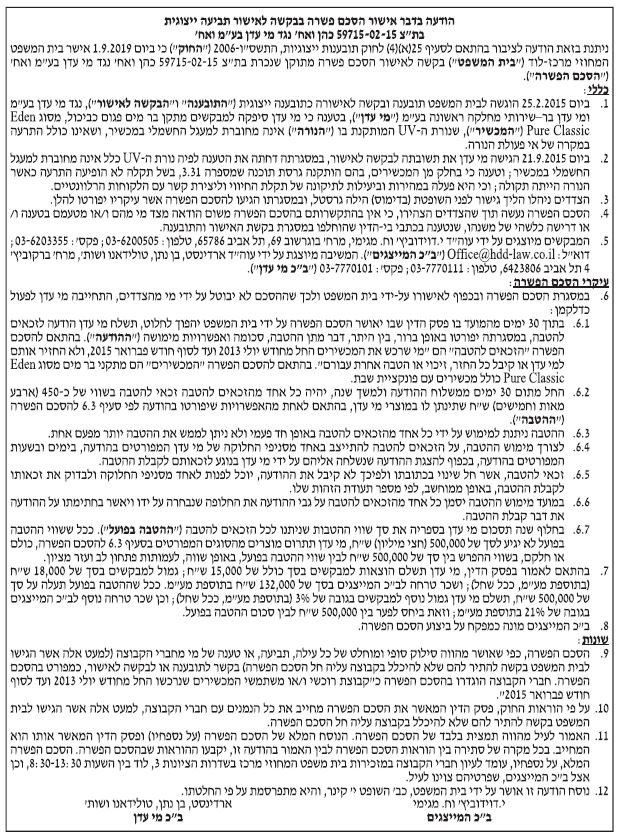 הסכם פשרה |מי עדן בע"מ ואח' [15/09/2019]