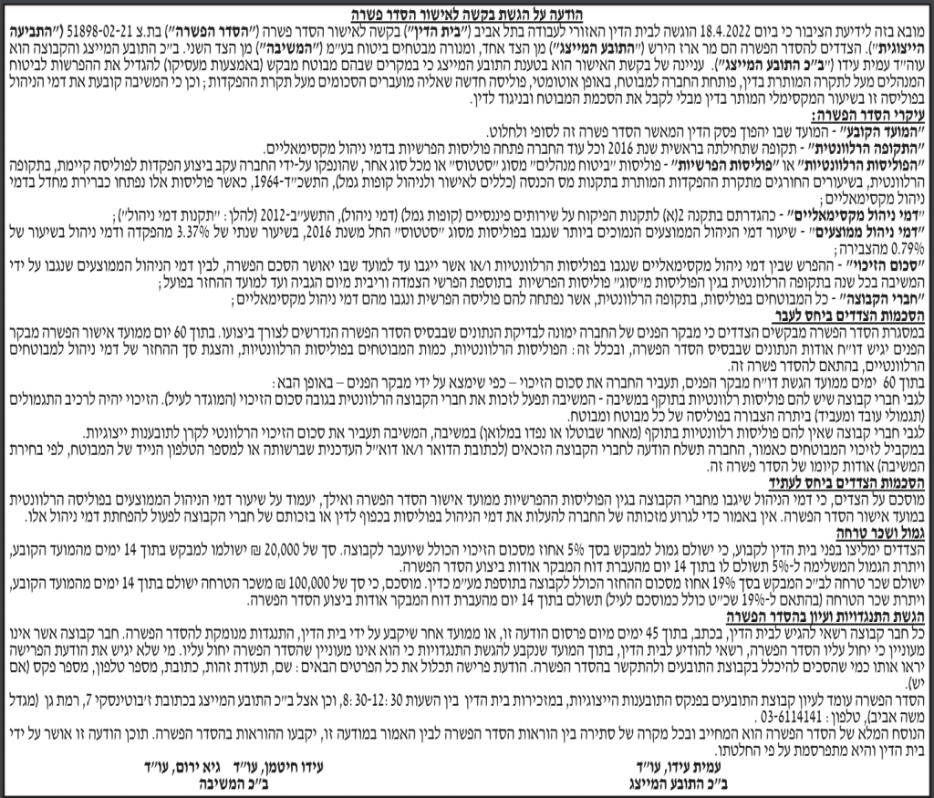 הסדר פשרה | נגד הראל חברה לביטוח [14/11/16]