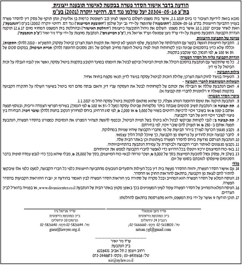 תביעה ייצוגית |גם אנד גם בע"מ [30/12/2018]