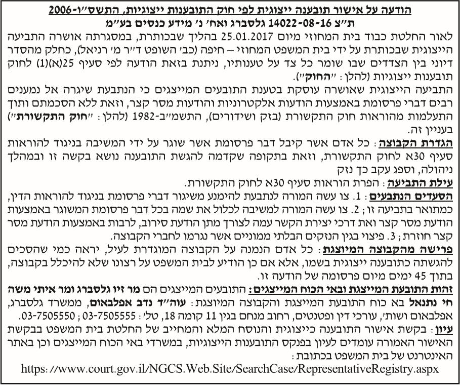 תובענה ייצוגית | מידע כנסים [1/2/17]