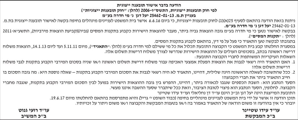 ת"צ: 25462-01-13 הצדדים: יעל דגן נ' מי חדרה בע"מ תאריך פרסום: 29/06/17